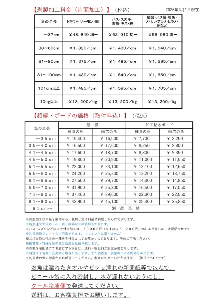 お名前:フリガナ:生年月日:郵便番号:ご住所:自宅番号:携帯番号:メールアドレス:ご依頼の魚の種類:全長:釣り上げた日:釣り上げた場所: